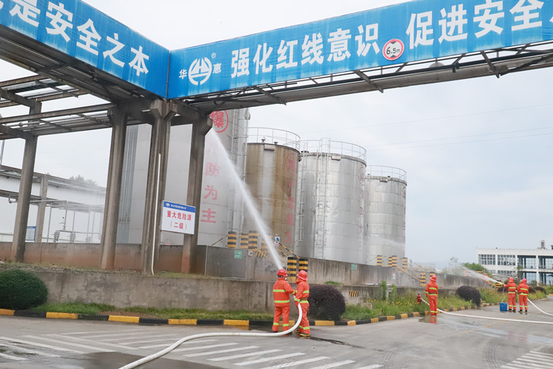 為進(jìn)一步提升重大危險(xiǎn)源安全管控水平以及公司各部門人員應(yīng)對突發(fā)事故的快速反應(yīng)、自救互救、應(yīng)急處置能力,6月25日上午9時(shí),華惠公司開展了甲醇打料泵法蘭發(fā)生大量泄漏應(yīng)急演練。