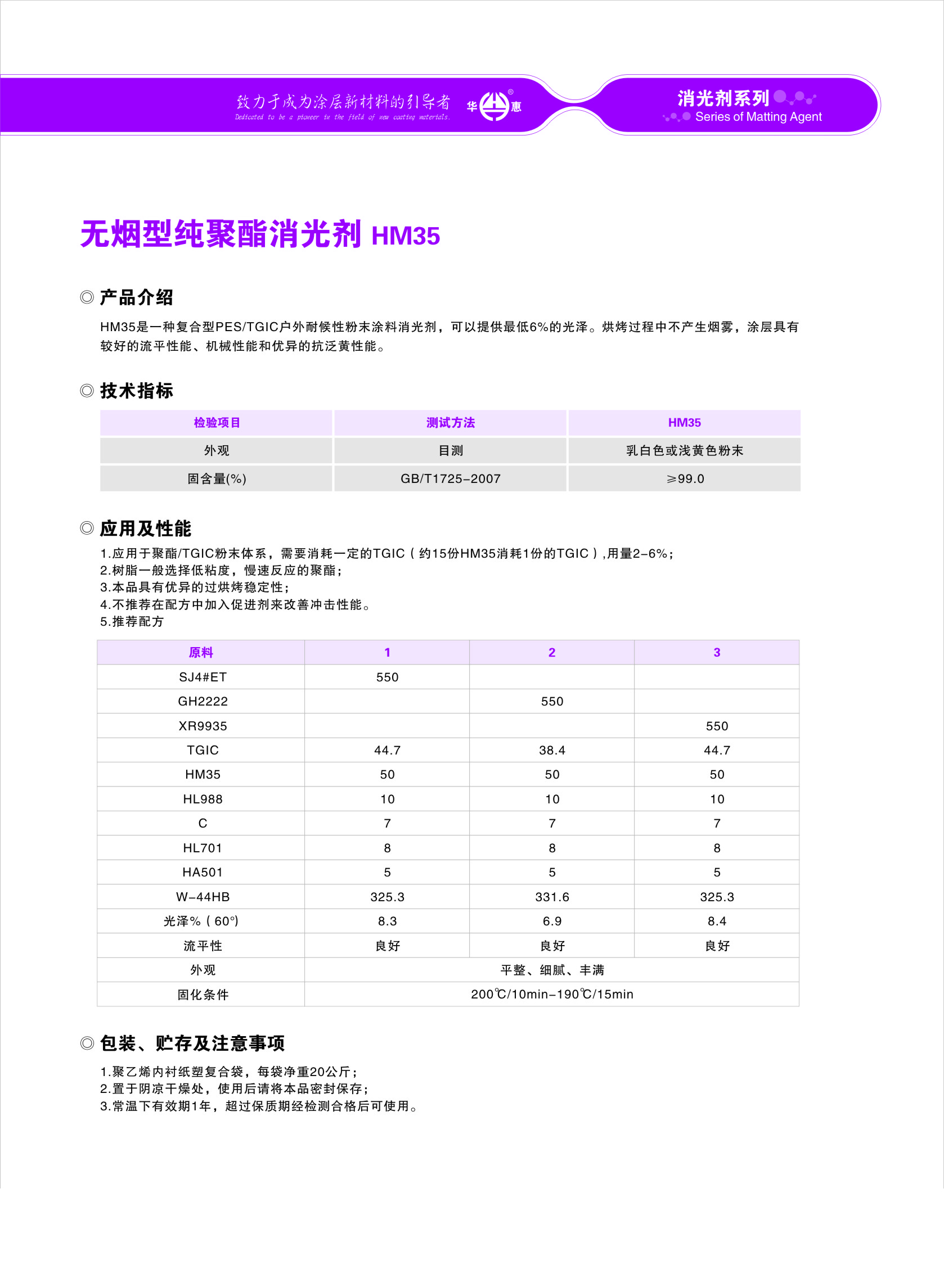無(wú)煙型純聚酯消光劑HM35